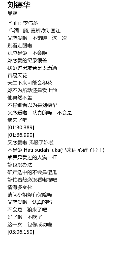 | [01:58.600] | bu shi shuo Hati sudah luka ma lai hua: xin sui le la! |