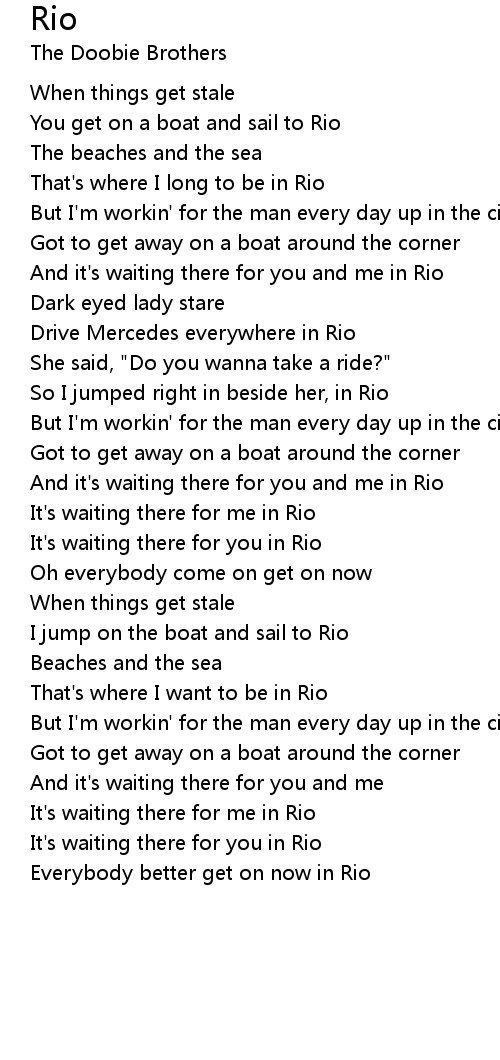 And it's waiting there for you and me in Rio |