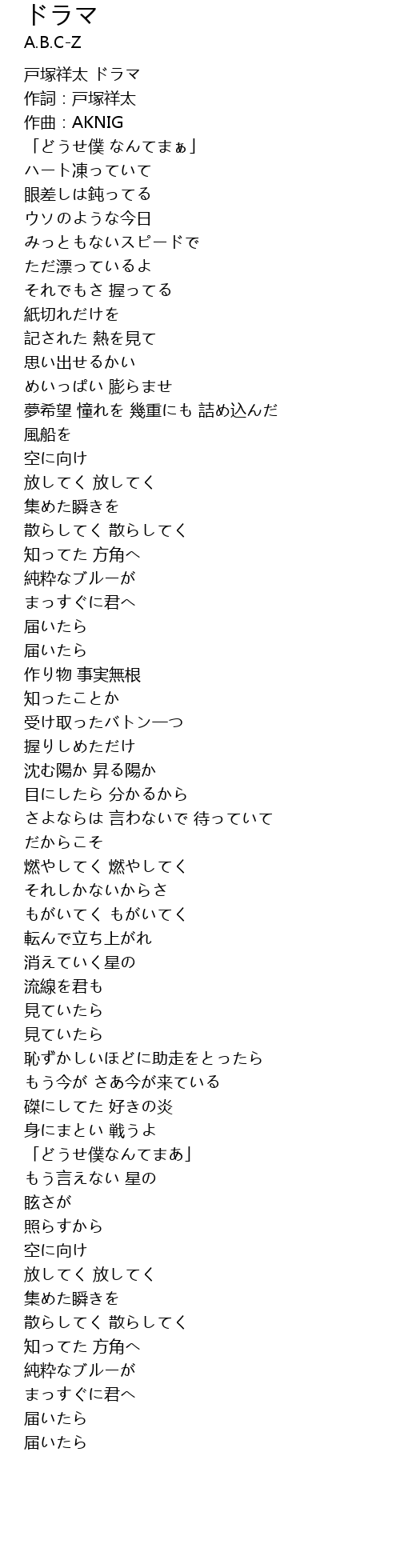 | 作詞:戸塚祥太 | |