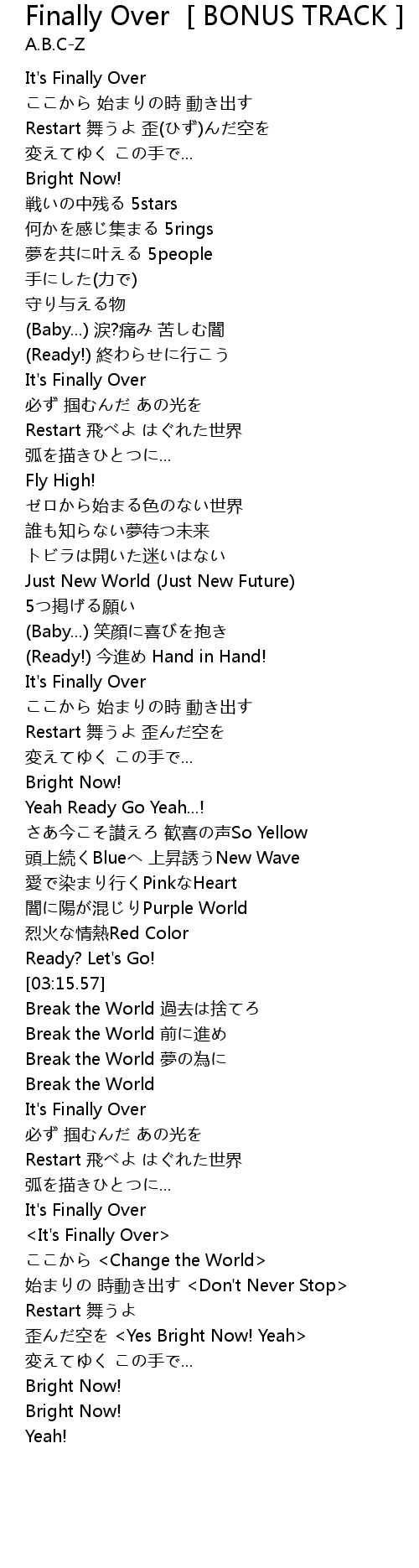 | [04:03.04] | <It's Finally Over> |