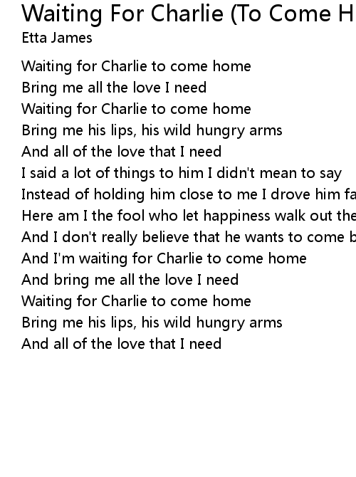 And I'm waiting for Charlie to come home |
