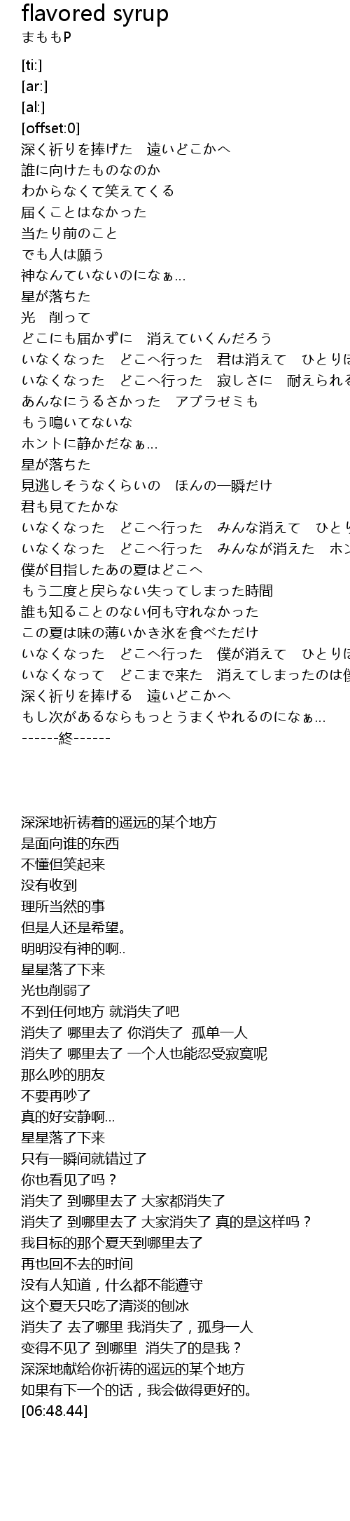| [06:15.64] | 深く祈りを捧げる 遠いどこかへ |