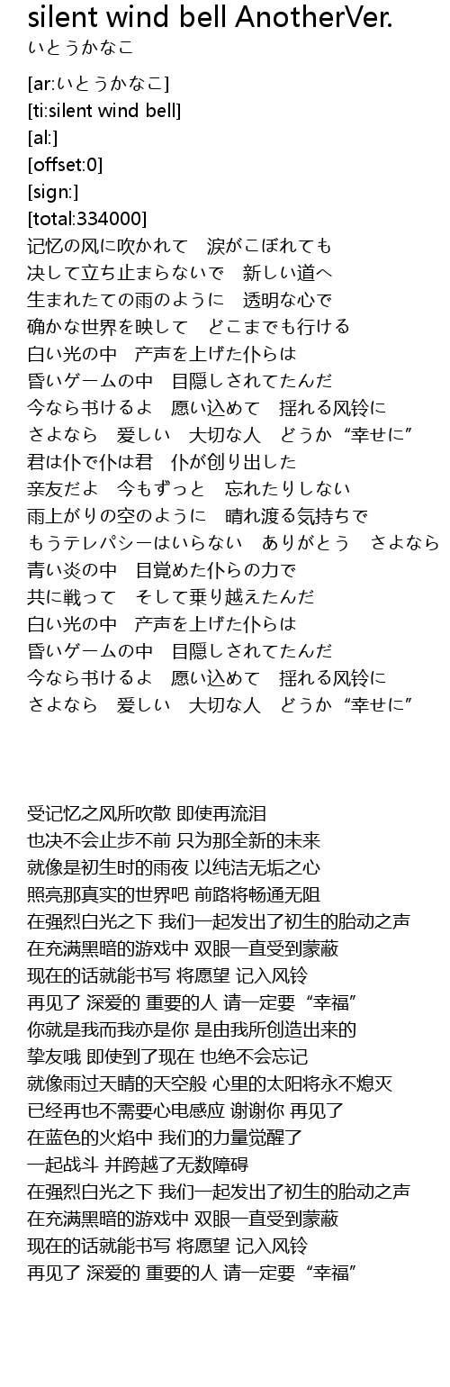 | [04:23.58] | 今なら书けるよ 愿い込めて 揺れる风铃に |