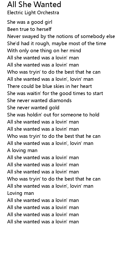 All she wanted was a lovin', lovin' man |