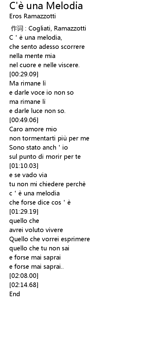 | [00:00.00] | 作词 : Cogliati, Ramazzotti |