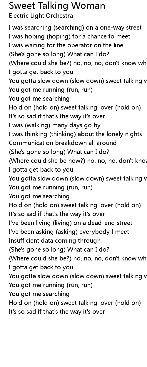 You gotta slow down (slow down) sweet talking woman (slow down) |