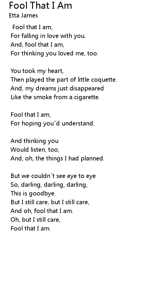 | Fool that I am, | |