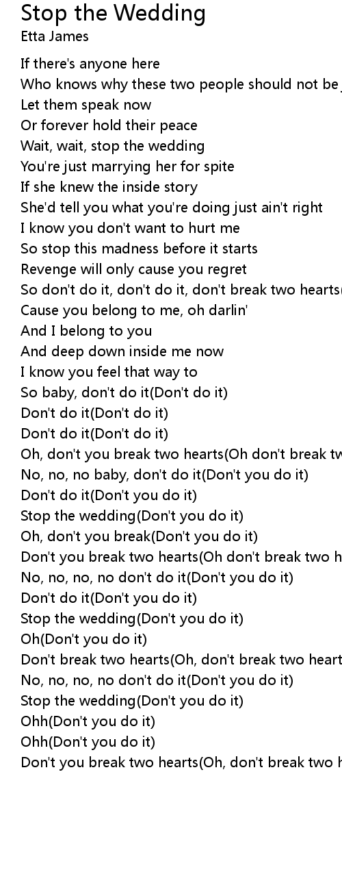 Stop the wedding(Don't you do it) |