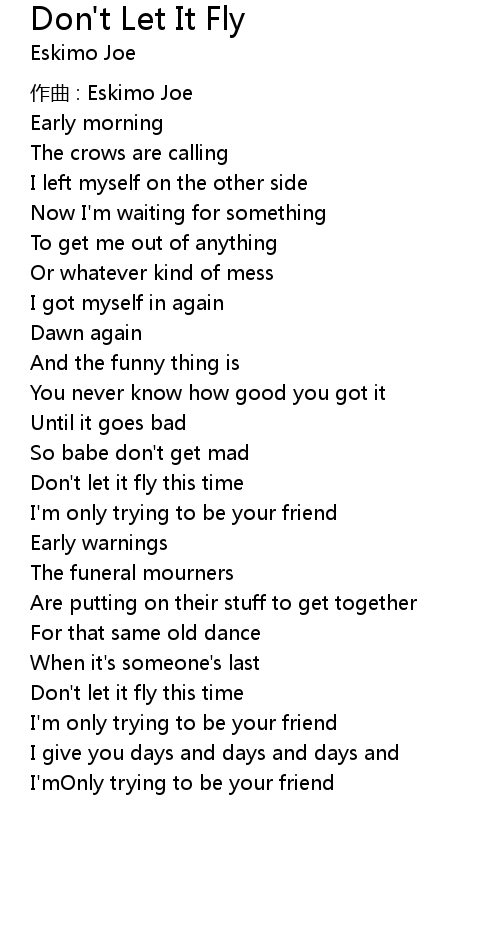 | Song | Don't Let It Fly |