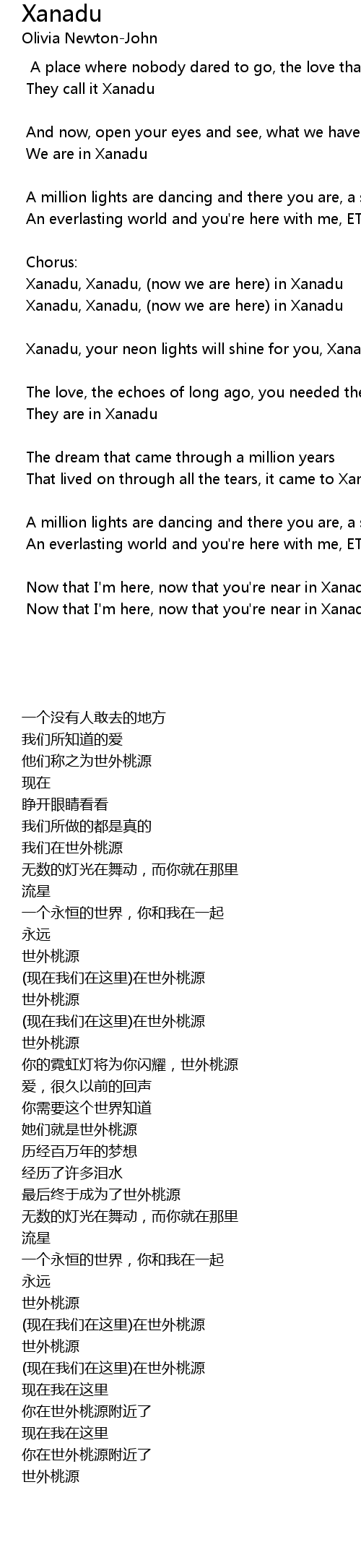 Xanadu, Xanadu, (now we are here) in Xanadu |