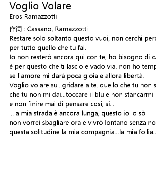 | Voglio volare su... gridare a te, quello che tu non sai... vuoi, | |