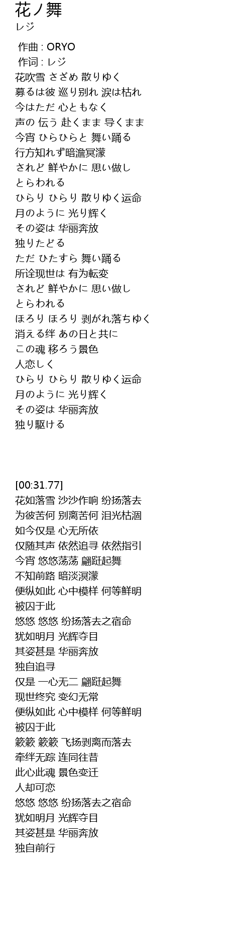 | [01:31.09] | ひらり ひらり 散りゆく运命 |