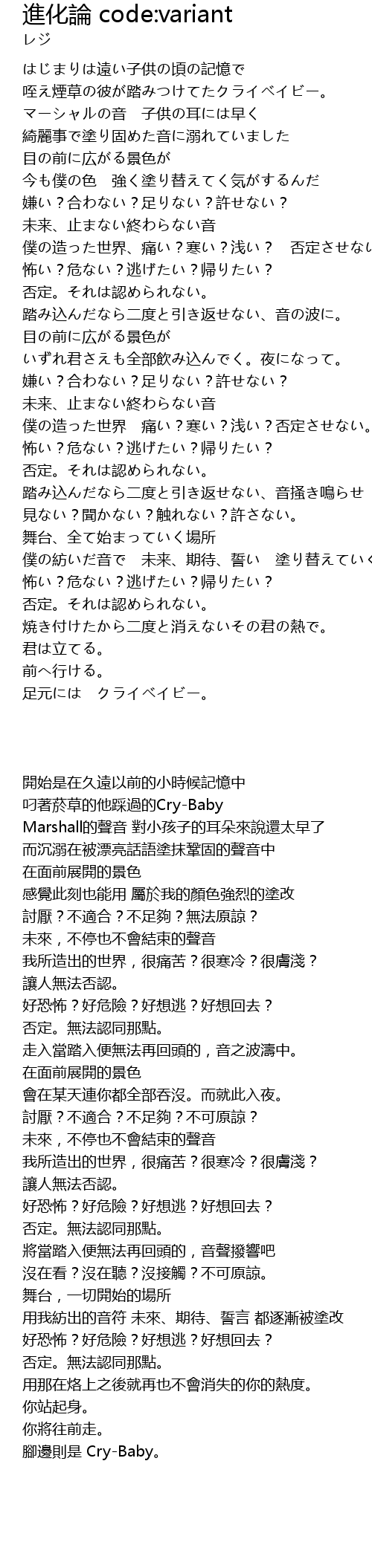 | [00:29.75] | 咥え煙草の彼が踏みつけてたクライベイビー。 |