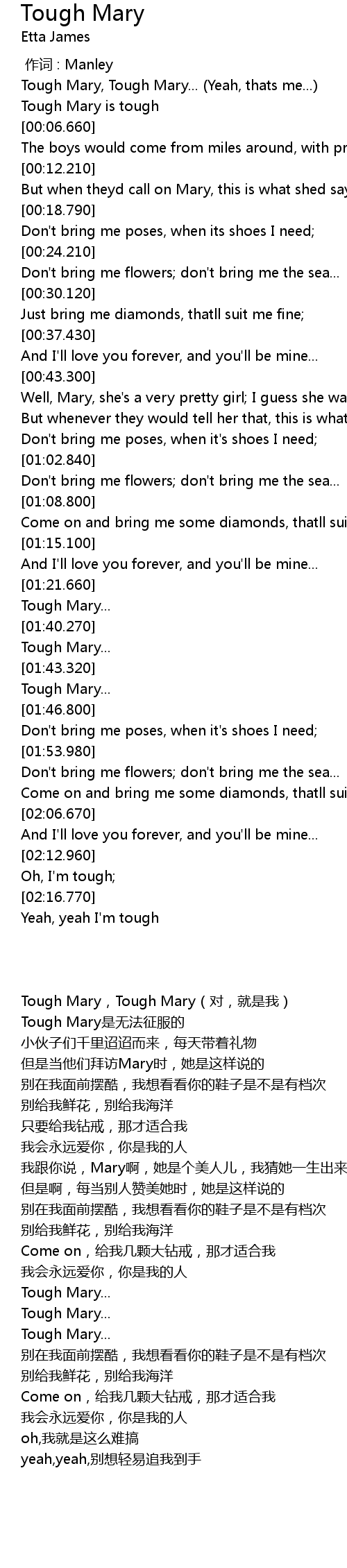 | [00:01.980] | Tough Mary, Tough Mary... Yeah, thats me... |