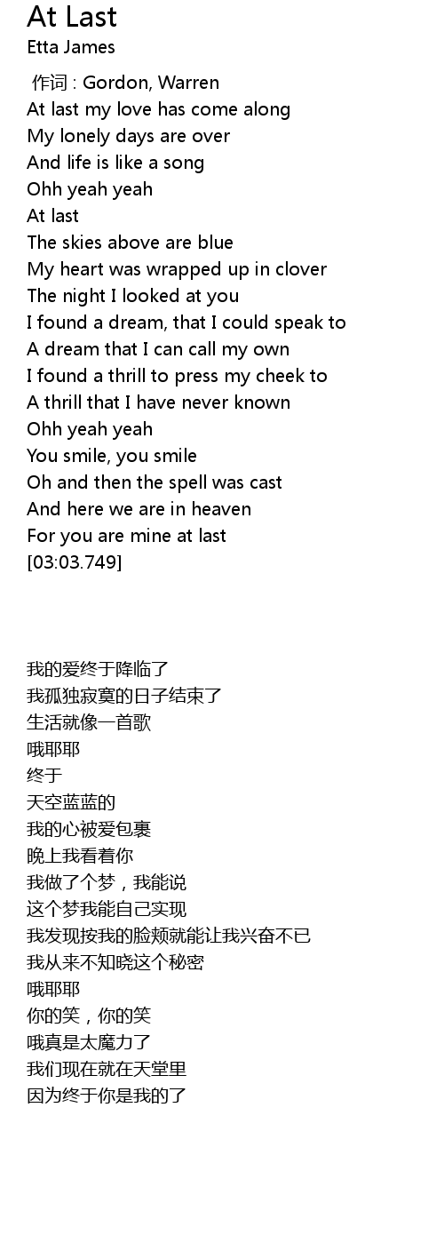 | Song | At Last |