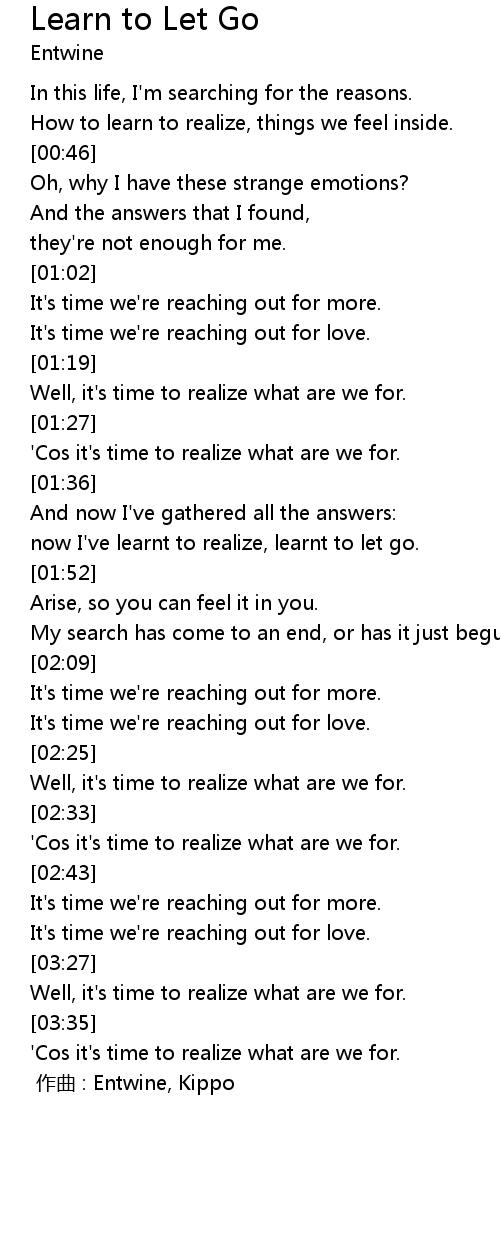 | [01:45] | now I' ve learnt to realize, learnt to let go. |