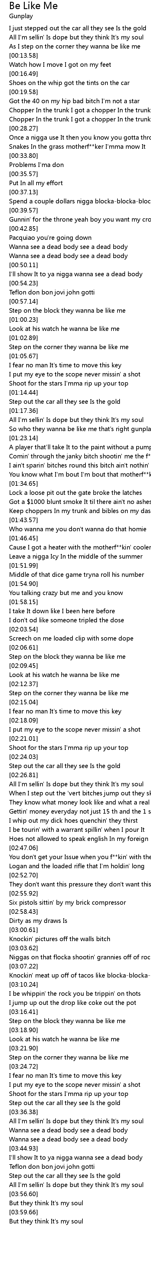 So who they wanna be like me that's right gunplay |