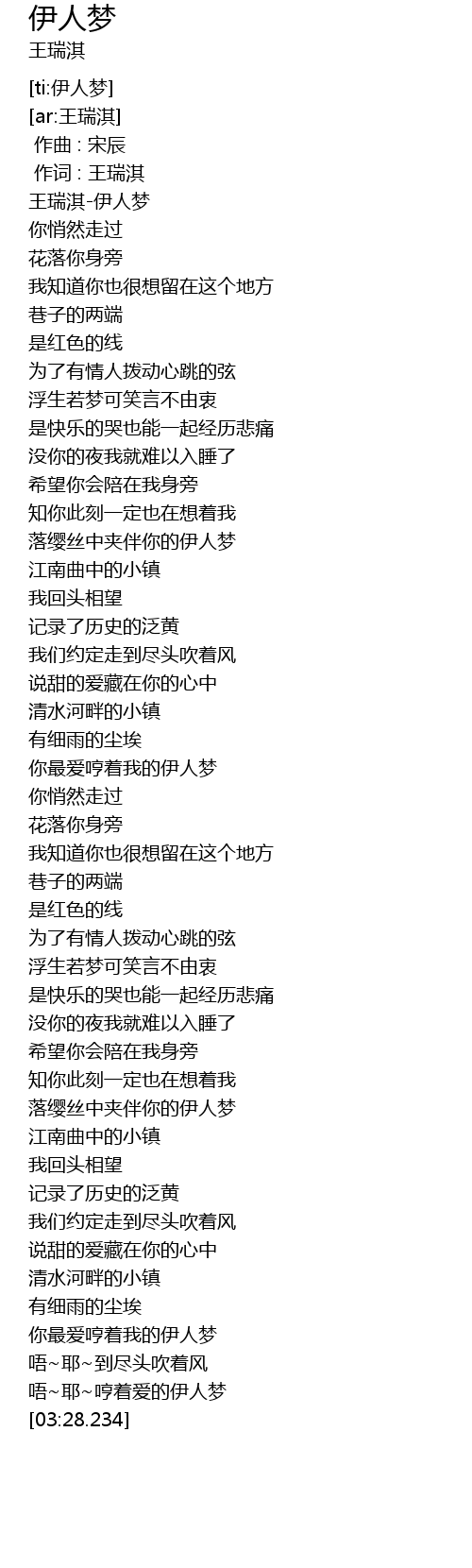 | [00:02.677] | 王瑞淇-伊人梦 |
