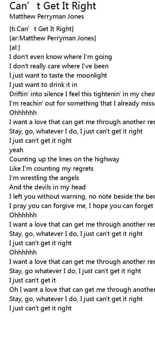 | [00:42.19] | Stay, go, whatever I do, I just can't get it right |