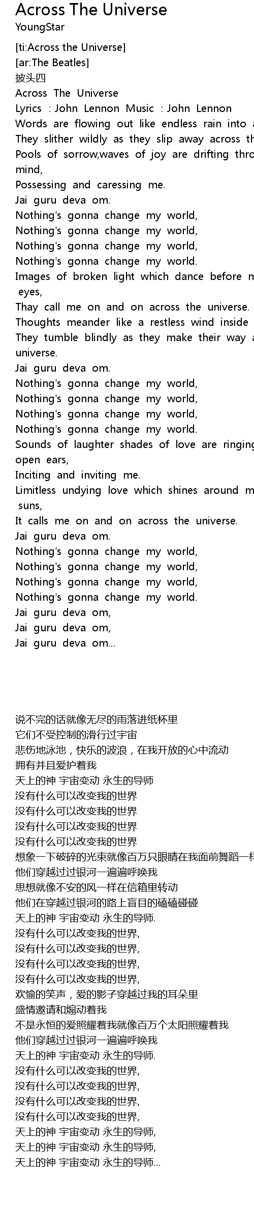 | [ti:Across the Universe] | |