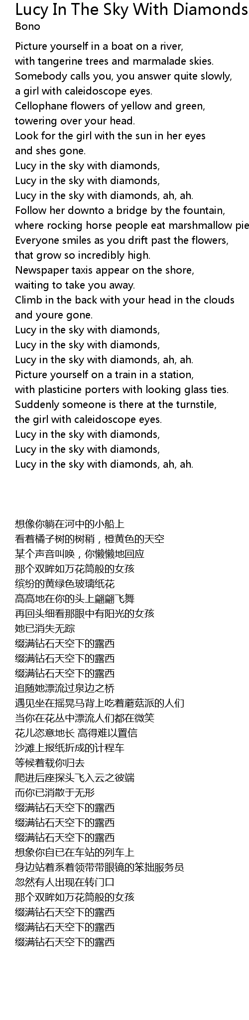 Lucy in the sky with diamonds, |