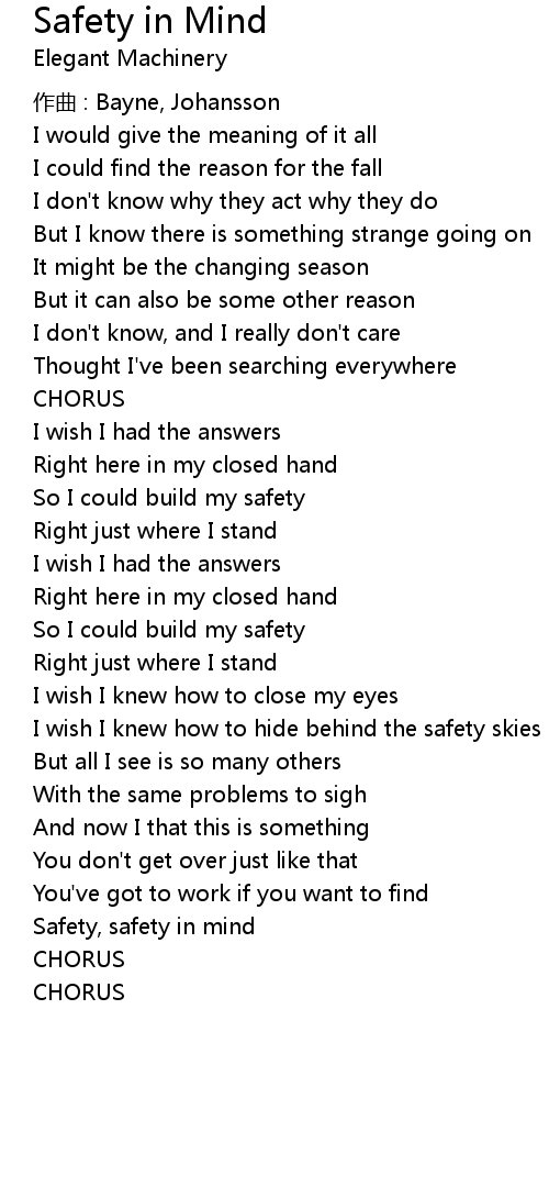 | Song | Safety in Mind |