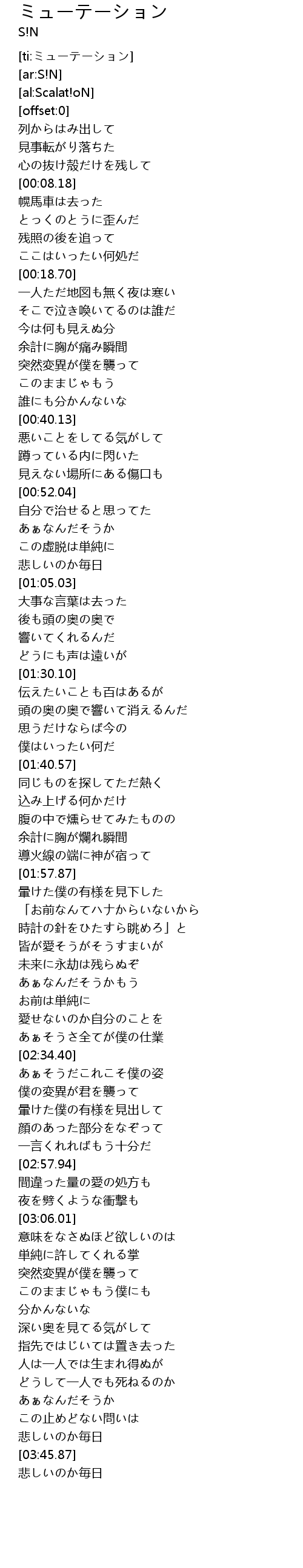 | [01:51.43] | 余計に胸が爛れ瞬間 |