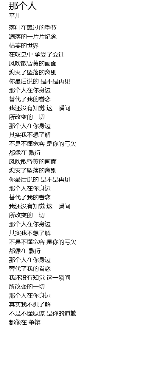 | [00:34.20] | diāo luò de yī piàn piàn jì niàn |