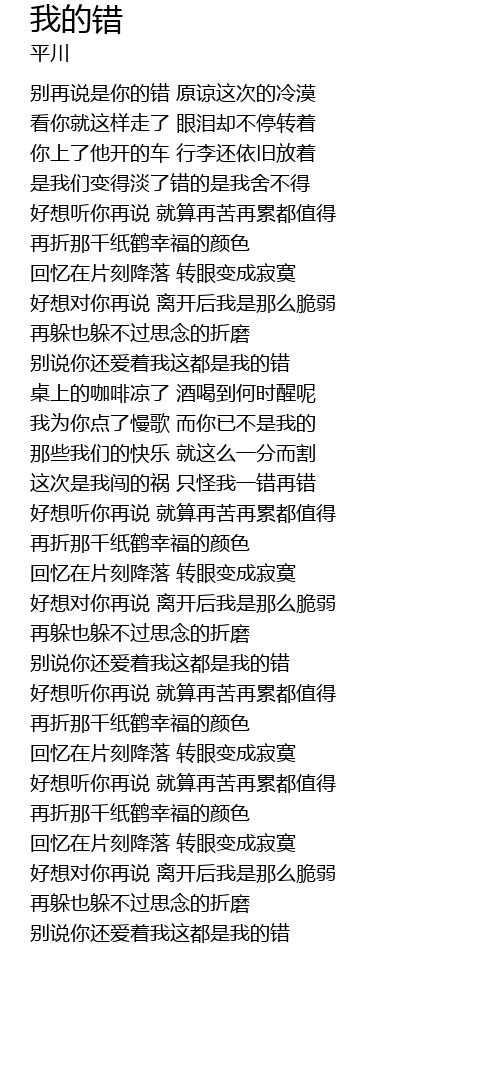 | [00:12.52] | 别再说是你的错 原谅这次的冷漠 |