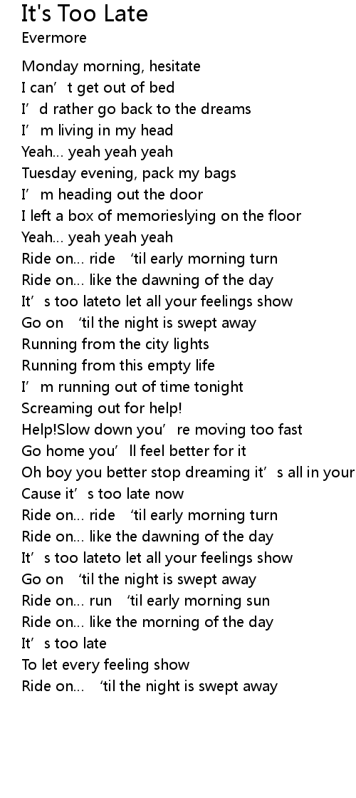 | Oh boy you better stop dreaming it' s all in your head' | |