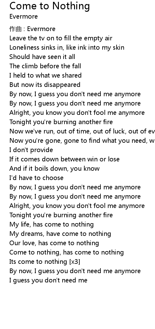 | Now we' ve run, out of time, out of luck, out of everything | |