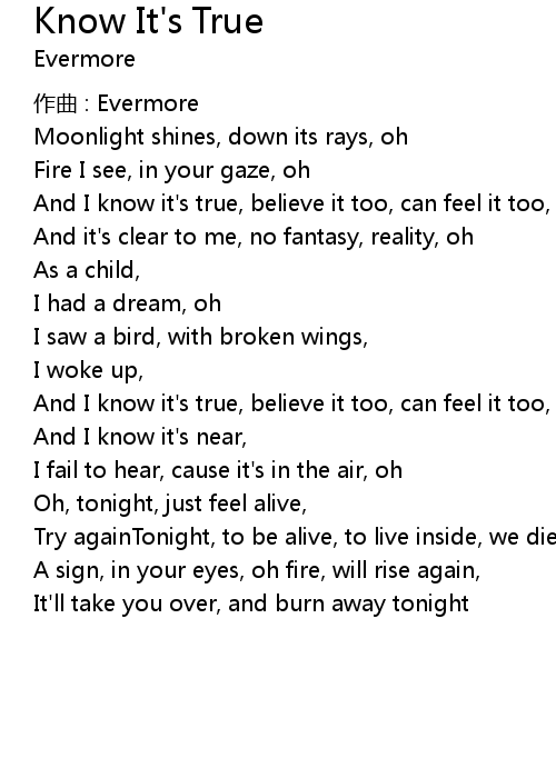 | And I know it' s true, believe it too, can feel it too, oh | |