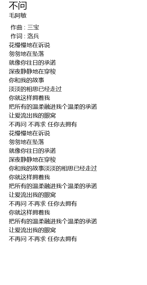 | [03:55.36] | bù zài wèn bù zài qiú rèn nǐ qù yōng yǒu |