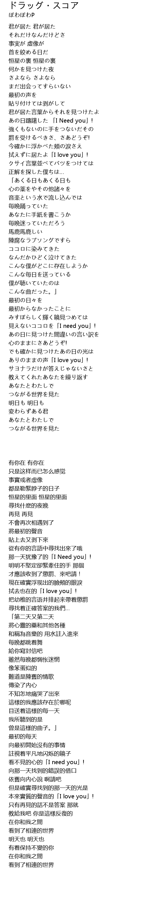 | [01:56.700] | 拭えずに居たよ「I love you」! |