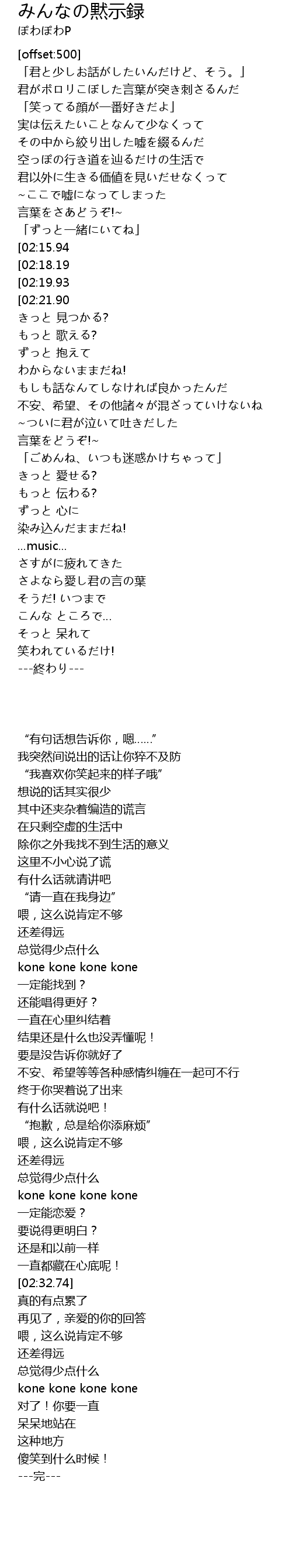 | [01:29.40][02:21.90][03:23.96] | コネコネコネコネ |