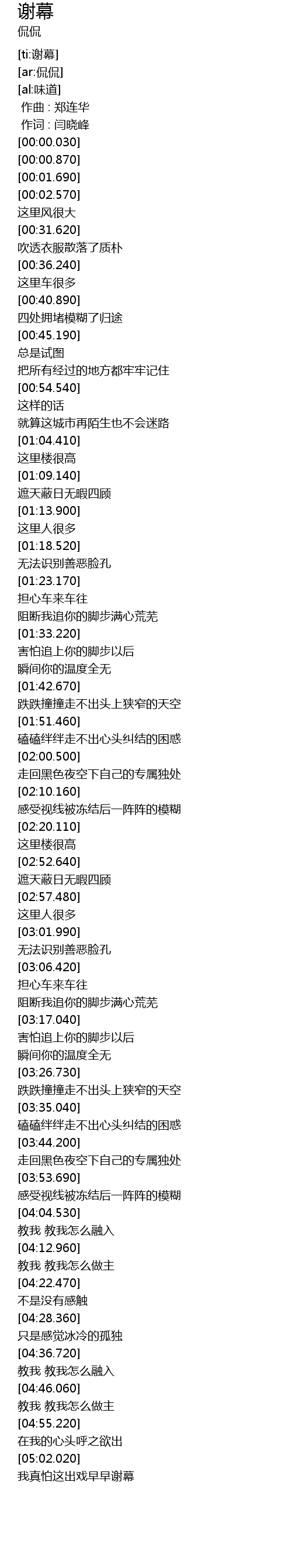 | [05:02.700] | 我真怕这出戏早早谢幕 |