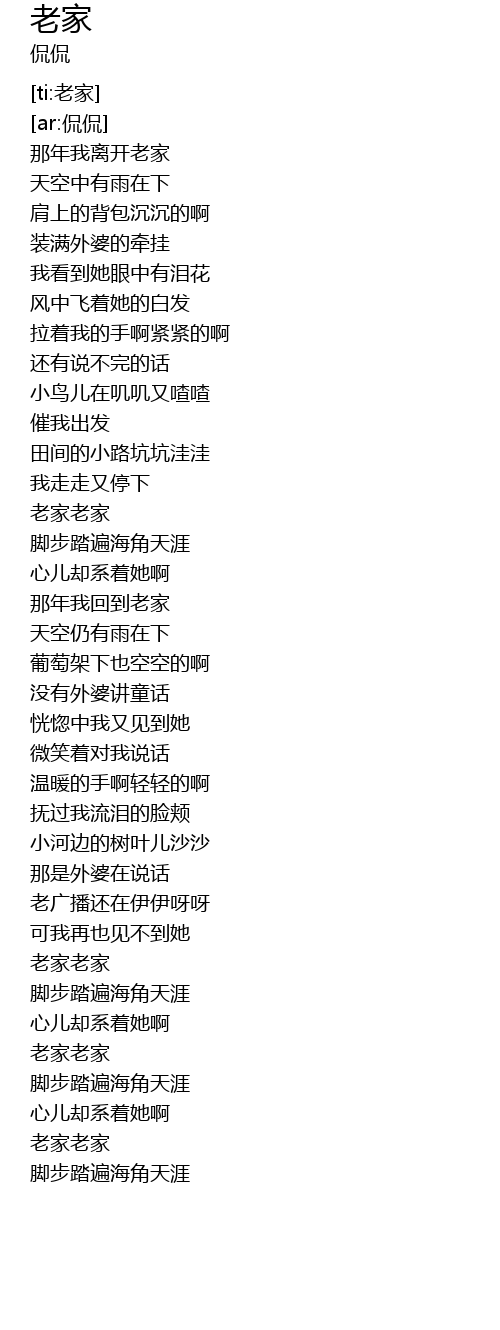 | [03:32.985] | lǎo jiā lǎo jiā |