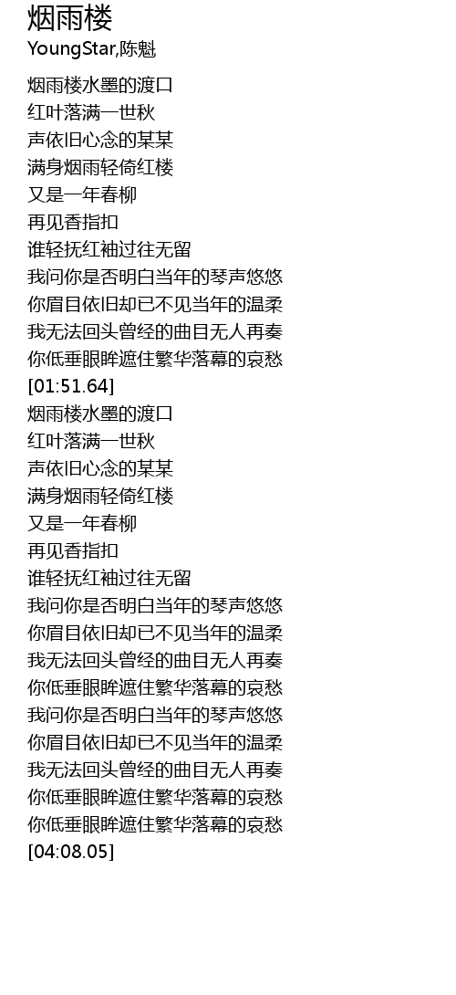 | [02:42.84] | 满身烟雨轻倚红楼 |