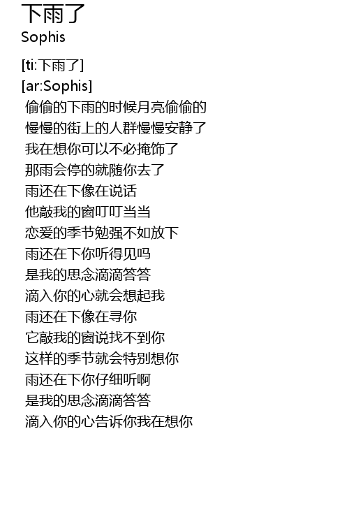 | [02:05.000] | 雨还在下你仔细听啊 |