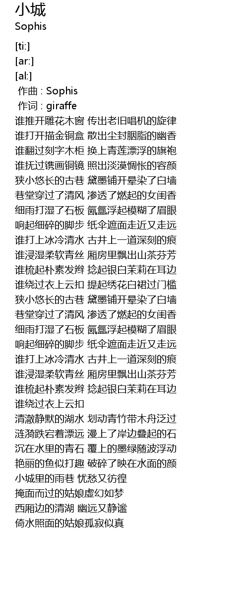 | [03:43.13] | 小城里的雨巷 忧愁又彷徨 |