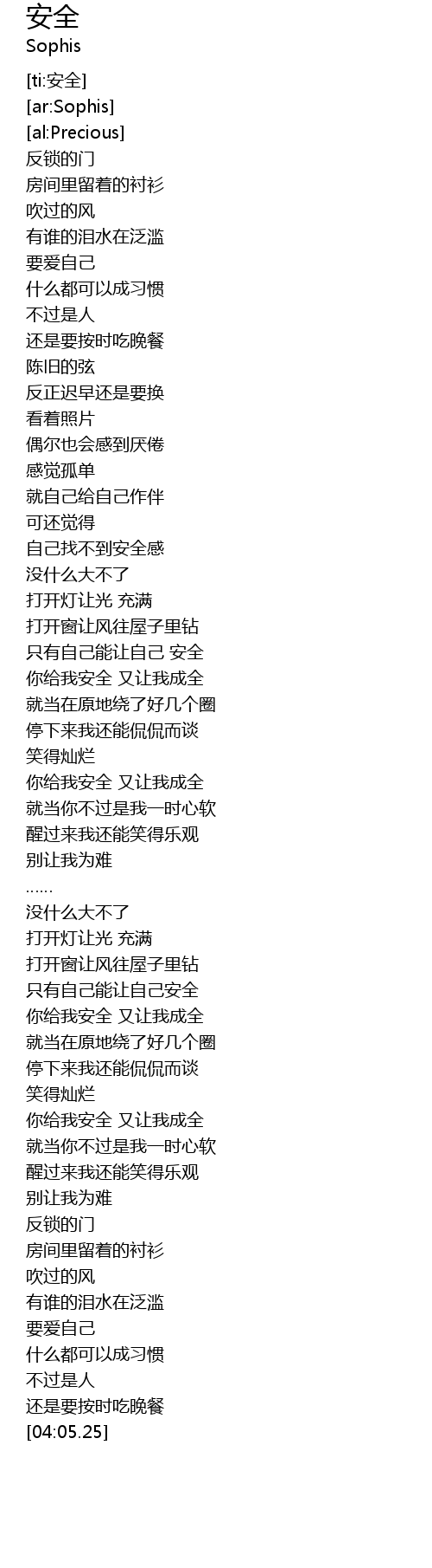 | [01:43.02] | 只有自己能让自己 安全 |