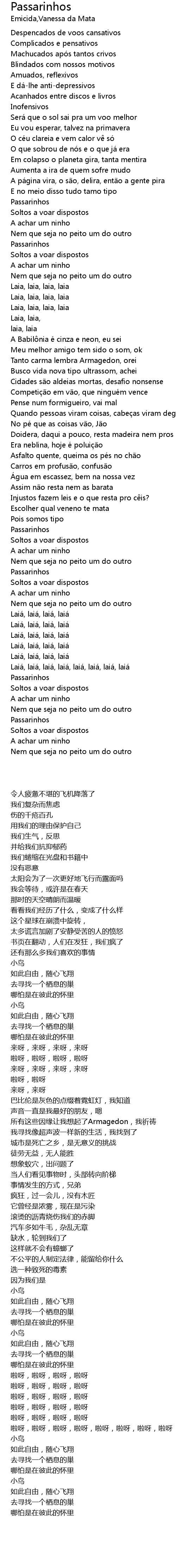 | [02:38.43] | Passarinhos |