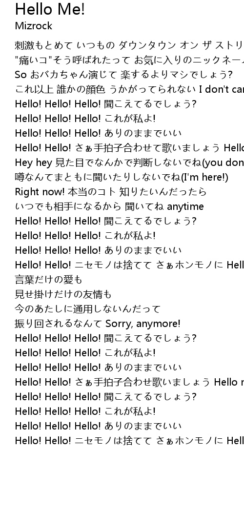 | Hello! Hello! ニセモノは捨てて さぁホンモノに Hello me! |