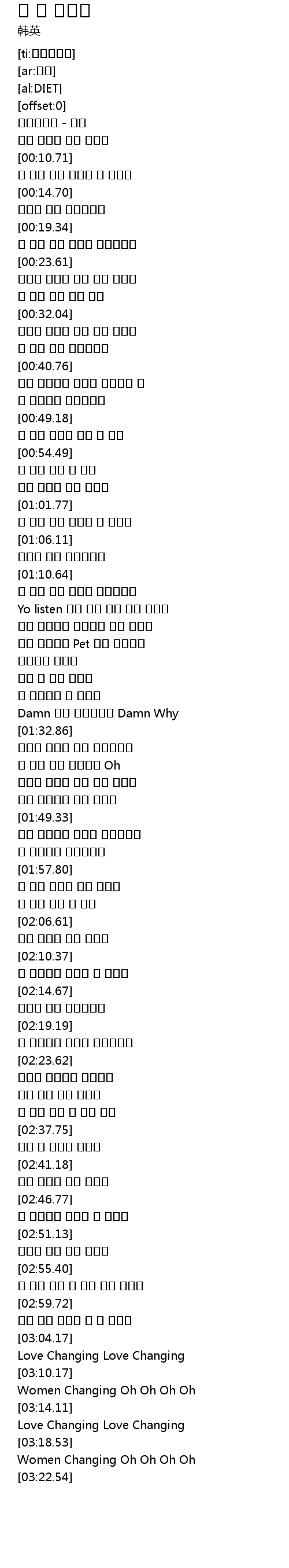 | [03:00.68] | 이제 그만 열심히 살 좀 빼세요 |