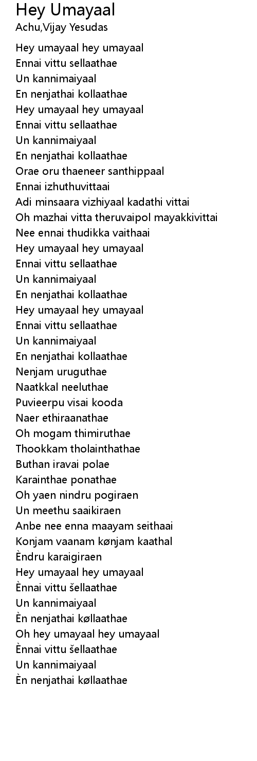 | [00:38.64] | Hey umayaal hey umayaal |