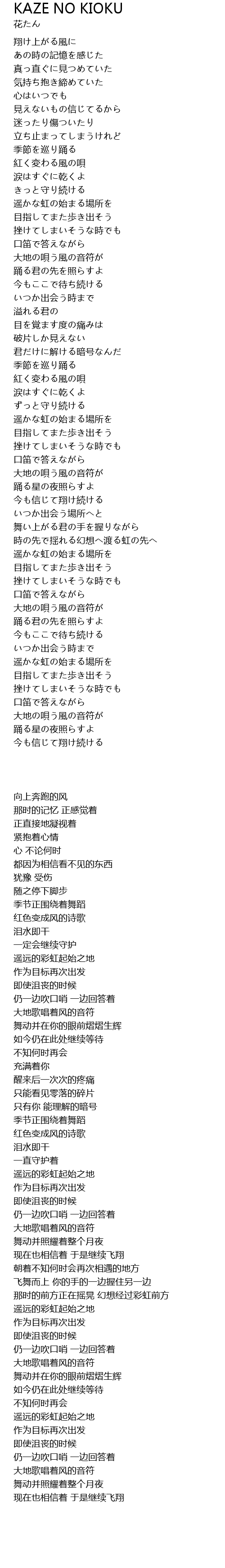 | Song | KAZE NO KIOKU |