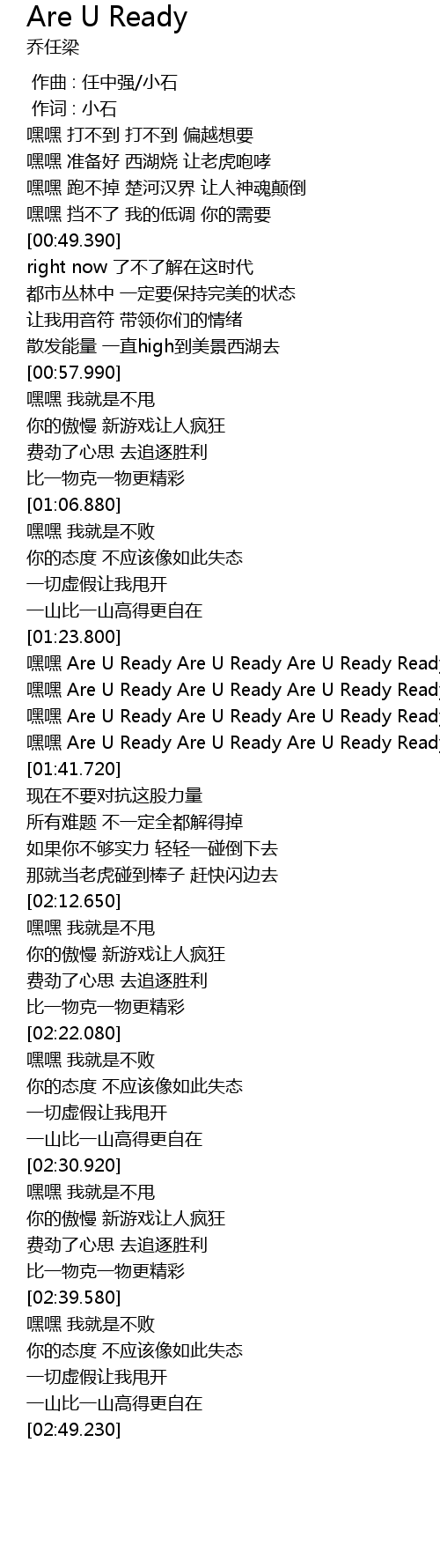 | [01:37.620] | 嘿嘿 Are U Ready Are U Ready Are U Ready Ready |