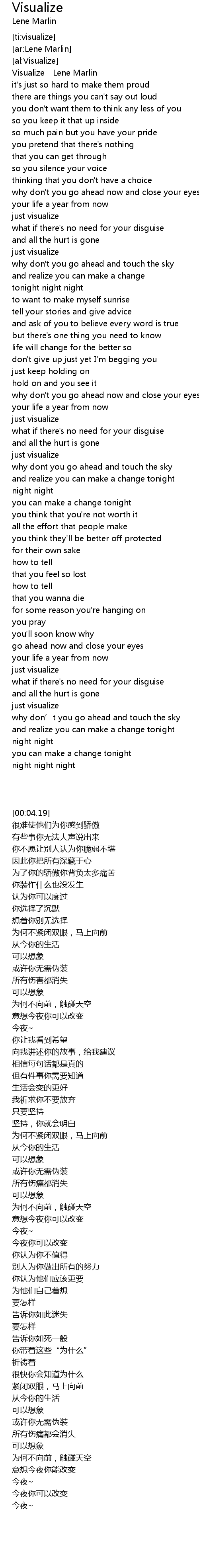 | [00:04.19] | Visualize Lene Marlin |