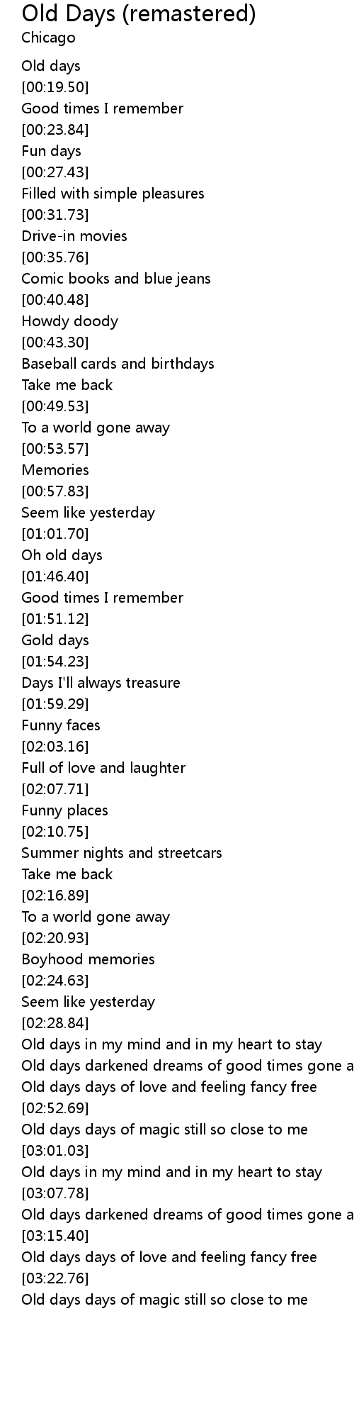 Old days in my mind and in my heart to stay |