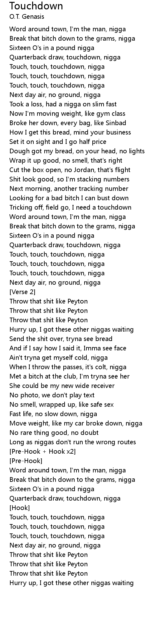 Touch, touch, touchdown, nigga |